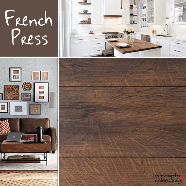I have a confession to make. I’m a chocolate addict. It’s been a problem of mine since I was a kid and I’m certain it’s never going to go away. So, you can image what today’s color trend does to my heart (and salivary glands). It’s a dark, creamy chocolate brown called ‘French Press’ and it’s a yummy part of the Benjamin Moore Color Trends 2016. I found a bunch of great design ideas using this striking brown that I just had to share with you. Here are some things you could try…