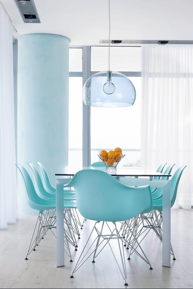 This color is an excellent choice for bedroom walls. When combined with white you get an almost ethereal, cloud-like effect.