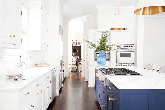 How beautiful! I’m a huge fan of white kitchens and the addition of indigo blue with stainless steel accents is even better!