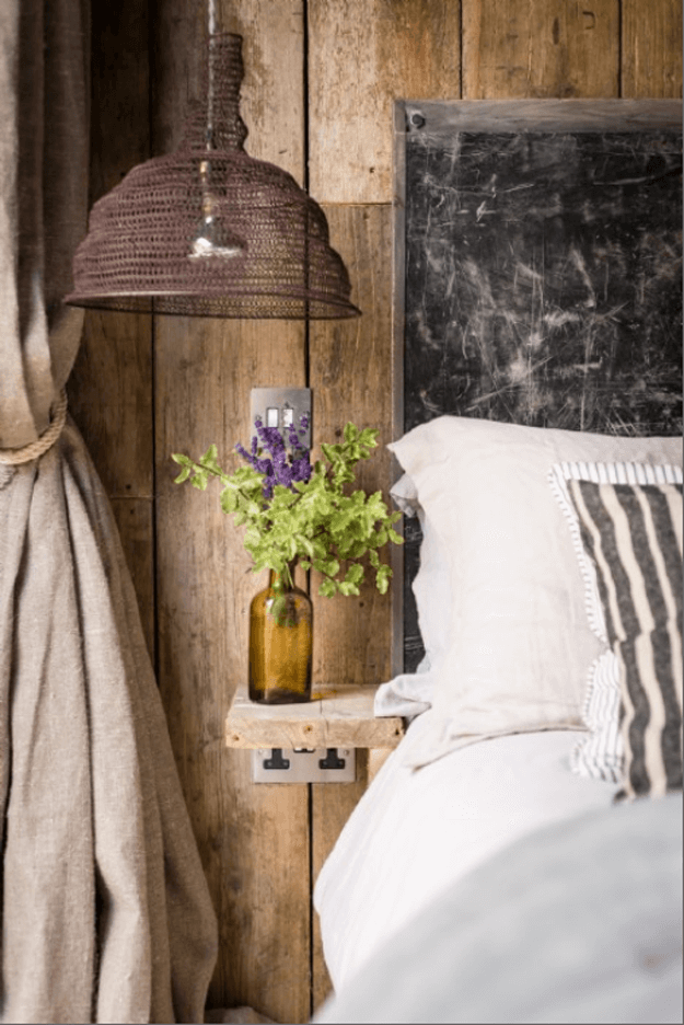 White brick. Neutral Gray linen bedding. Reclaimed wood accents. What more does a bedroom need?