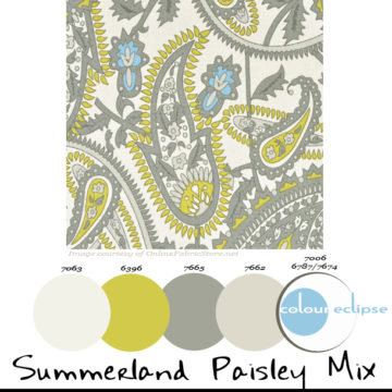 Would you like to Get This Look? Here are the paint colors and fabric to get you started: Paint: All colors from Benjamin Moore: 2004-10 deep rose, 2119-40 silver streak, 2056-50 baby boy blue, 2119-60…