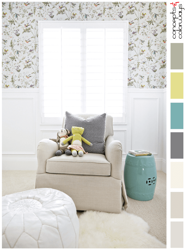 I don't typically fall for floral wallpaper but, this vintage style floral with a white background really caught my eye. It looks so lovely paired with the white wood wainscot and trim in this cozy nursery. But, what really makes this look special is the color palette. It has just the right amount ...